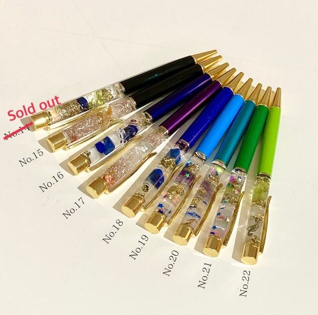 書けるジュエリー(オルゴナイトボールペン)を全22種類販売します。